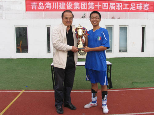 繼10月9日分組預(yù)賽之后,17日(星期天)上午,海川集團“海川建設(shè)杯”第14屆職工足球賽在市北區(qū)中聯(lián)運動公園足球場進(jìn)行了半決賽和決賽。吳鑫董事長和欒恒忠副總裁蒞臨球場為球員鼓勁,并在閉幕式上分別為前三名球隊頒獎。決賽是在三分公司足球隊和物流分公司足球隊之間進(jìn)行的,這是一場精彩的進(jìn)球大戰(zhàn),最終三分公司以5:4的比分險勝物流分公司隊,獲得冠軍;物流分公司獲得亞軍;海川總部以4:2戰(zhàn)勝二分公司隊獲得第三名。