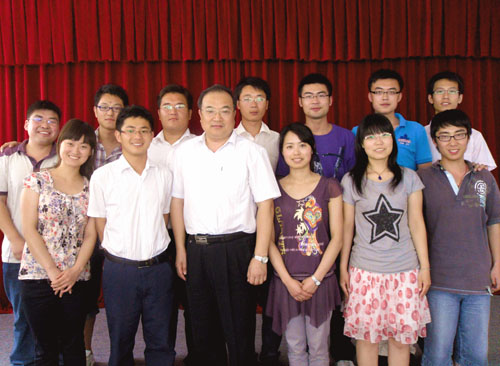 座談會(huì)最后,吳總做了總結(jié)講話,他說,我們成立“海川建設(shè)校園俱樂部”的目的是為了以這樣一種方式為社會(huì)造就最優(yōu)秀的人才,讓俱樂部會(huì)員成為職場(chǎng)精英,俱樂部為學(xué)生提供一個(gè)造就自我的平臺(tái),同時(shí)也是俱樂部會(huì)員們快樂渡過大學(xué)生活的一個(gè)平臺(tái),塑造一個(gè)實(shí)現(xiàn)人生價(jià)值的平臺(tái)。同時(shí)吳總用自己“老馬自知夕陽(yáng)晚,不需揚(yáng)鞭自?shī)^蹄”的人生進(jìn)取精神勉勵(lì)同學(xué)們,鼓勵(lì)同學(xué)們要趁著年輕的美好時(shí)光,不斷去學(xué)習(xí)充實(shí)自己,盡可能的使自己的知識(shí)水平提升一個(gè)臺(tái)階。并勉勵(lì)大家在以后的人生道路上,要踏實(shí)做好自己的事情,善于思考、鉆研,爭(zhēng)取把自己的工作做到完美;要給自己制定目標(biāo),并向著這個(gè)目標(biāo)努力工作。同時(shí)邀請(qǐng)同學(xué)們?cè)?012年海川集團(tuán)成立60周年的時(shí)候,再“回家”來(lái)看看。座談會(huì)后,吳總與大家合影留念。