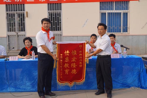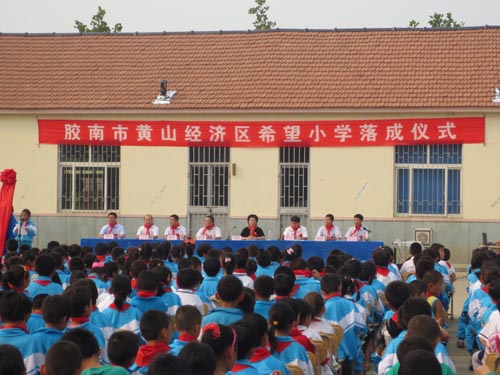 9月20日下午,秋高氣爽、陽光明媚,膠南市黃山經(jīng)濟區(qū)希望小學(xué)落成儀式在學(xué)校大操場隆重舉行。激昂的國歌聲后,少先隊員們?yōu)槌鱿I(lǐng)導(dǎo)敬獻紅領(lǐng)巾,以此來表達孩子們的崇高敬意。一位學(xué)生代表用稚嫩的童音道出了對青島海川建設(shè)集團及支持希望工程事業(yè)建設(shè)的各類愛心團體的誠摯感謝,和臺下上千名含苞待放,映襯在陽光里的一張張幸福笑臉一樣,他們都是祖國的未來和希望,也讓在場的每一位成年人對“捐資助教、功德無量”這句話有了更深刻的理解和感悟。黃山經(jīng)濟區(qū)希望小學(xué)校長懷著激動地心情向海川集團贈送錦旗一面,愛心助學(xué)的善舉也贏得了在場師生一次又一次熱烈的掌聲。集團黃中坡副總裁代表發(fā)言,他特別指出,今年恰逢集團成立60周年之際,本著“節(jié)儉辦大慶”和“注重社會公益性”的宗旨,集團將主要活動資金拿出來援建黃山經(jīng)濟區(qū)中心小學(xué),另外發(fā)動企業(yè)職工向老一輩建筑人曾經(jīng)援建過的四川藏族甘孜地區(qū)捐獻衣物。通過一系列與社會接軌的主題活動,力爭將本次大慶辦得更有意義。最后他衷心希望膠南市黃山經(jīng)濟區(qū)中心小學(xué)的全體同學(xué)從小樹立遠大目標,刻苦學(xué)習(xí),努力向上,爭做國家棟梁之才,立志回饋社會,報效祖國。青島團市委副書記張海軍和膠南市委副書記佟海燕也出席儀式并與海川集團黃中坡副總裁一起為希望小學(xué)揭牌,同時就海川集團對教育公益事業(yè)的傾情參與和大力支持給予了充分肯定和高度評價。