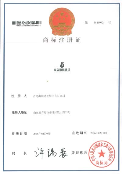 2016年5月16日,公司正式收到“泓久海川建設(shè)”商標(biāo)注冊(cè)證書,這標(biāo)志著海川集團(tuán)沿用六十多年的標(biāo)志正式成為商標(biāo),受國(guó)家法律保護(hù),為公司進(jìn)一步創(chuàng)建企業(yè)品牌、搶占市場(chǎng)先機(jī)、開(kāi)拓埠外市場(chǎng)夯實(shí)了基礎(chǔ)。