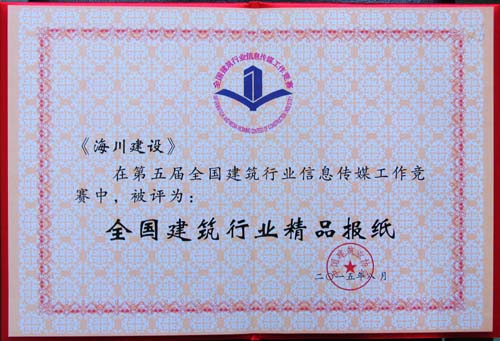 8月26日,中國建筑業(yè)協(xié)會在大連召開的全國建筑行業(yè)信息傳媒工作經(jīng)驗交流會上,向第五屆全國建筑行業(yè)信息傳媒工作競賽的優(yōu)勝者頒發(fā)了獎杯和榮譽證書。海川集團被評為“全國建筑行業(yè)信息宣傳先進集體”,公司網(wǎng)站被評為“全國建筑行業(yè)精品網(wǎng)站”,《海川建設(shè)》企業(yè)報被評為“全國建筑行業(yè)精品報紙”,王修岐同志被評為“全國建筑行業(yè)信息宣傳優(yōu)秀工作者”。