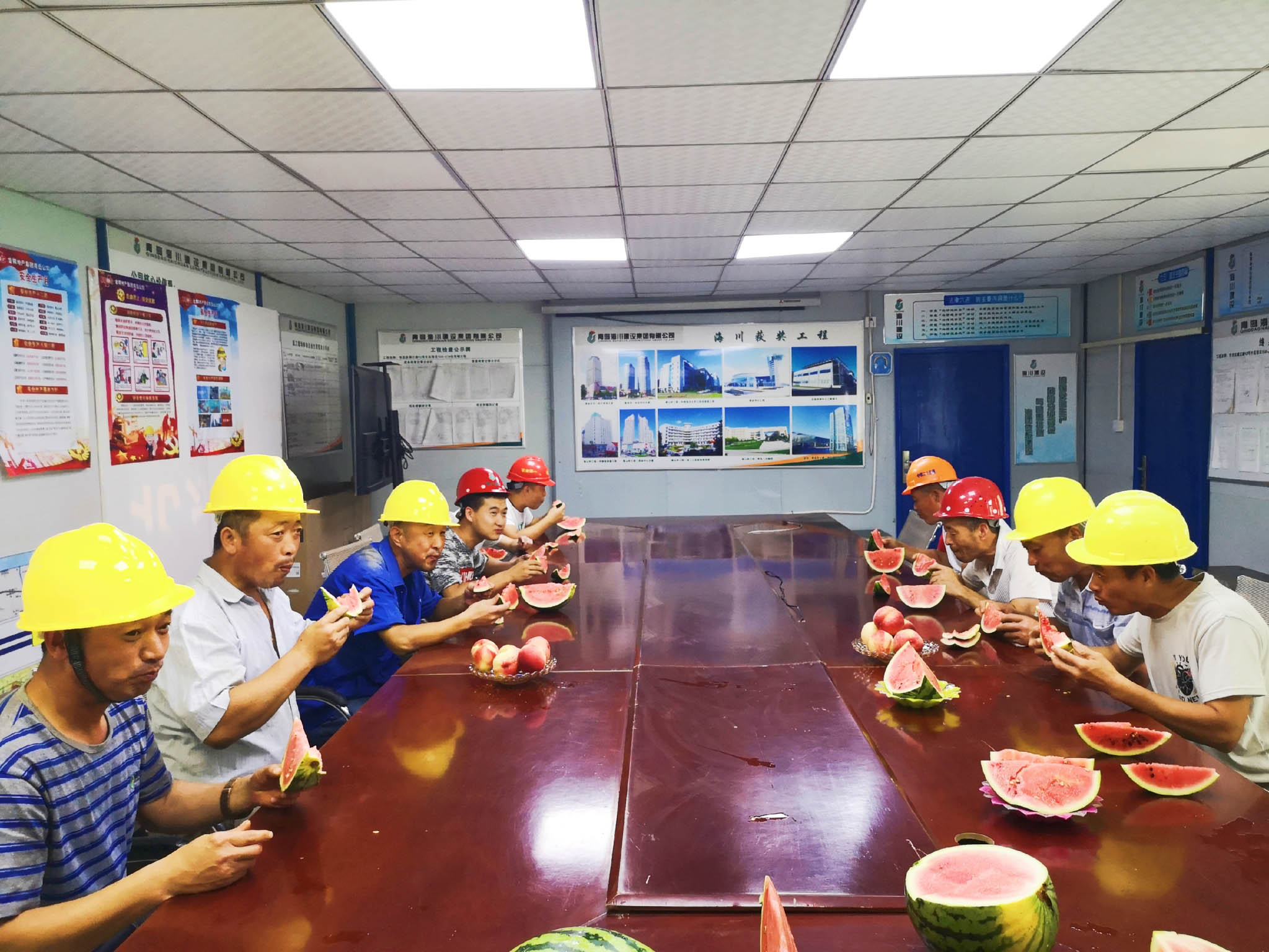 7月9日集團工會走進長沙路人才公寓項目部、北澗社區(qū)安置區(qū)項目部、富爾瑪項目部、鎮(zhèn)江路12號片區(qū)項目部,為一線工人送去海川農(nóng)林生態(tài)園的西瓜、桃子等等解暑降溫慰問品。